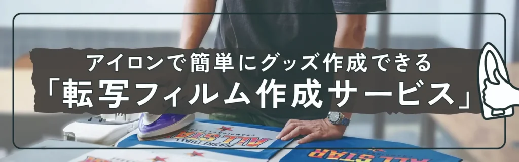 転写フィルムをお届けするのではなく、ご希望の素材(Tシャツやトートバッグなど)に、ご希望のデザインを転写済みの完成品をお届けするサービスも行っています。