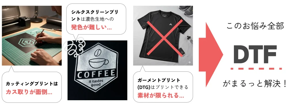 そのお悩み、「DTFプリント」なら解消できるかも!